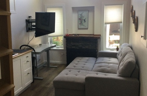 washer/dryer/full kitchen/internetcable/gasfireplace/ outdoor paitio bbq pet freindly Close to downtown on majourbus route.Fewsteps away from Bamfieldpark/Gourge waterway which you can swim/paddle board andso many other amenties its hard to list them all..
