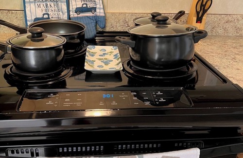 step inside this quaint 1-bedroom, 1-bathroom haven and immediately feel at home The bedroom is adorned with comfortable linens, ensuring a restful night's sleep after a day of adventure. In the full kitchen, discover the convenience of a coffee maker, microwave, plate settings for 4, and cookware, allowing you to whip up delicious meals at your leisure.