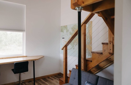 come stay at the famous pilot lodge! welcome to the wrangell tiny house, where woodlands and aviation meet at your doorstep The property is located just ten minutes from Big Lake, AK. Come enjoy the Alaskan sunsets from your private balcony deck connected to the 1-bedroom loft. Your cabin is complete with a full kitchen and bathroom.