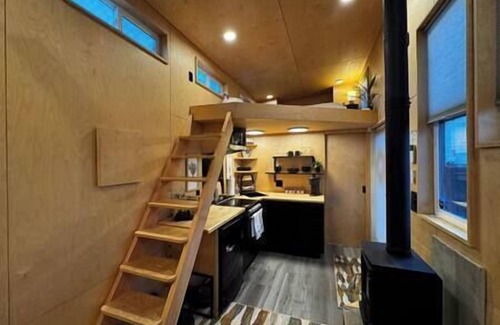 a design enthusiasts tiny home Tiny Oasis exemplifies the tiny home experience with unique materials and an open layout. Designed to be spacious enough for 2 people but cozy enough to evokes a sense of calm serenity.