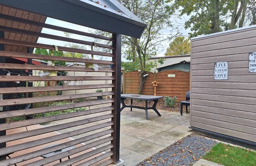 Tinyhouse/chalet at the Rhederlaagse Meren vacation park in NL-Lathum by the lake is located in Lathum. Tinyhouse/chalet at the Rhederlaagse Meren vacation park in NL-Lathum by the lake provides accommodation, featuring Fireplace/Heating, Child Friendly, Internet, among other amenities. This Ski Chalet features Fireplace/Heating, Child Friendly, Internet, to make your stay a comfortable one.