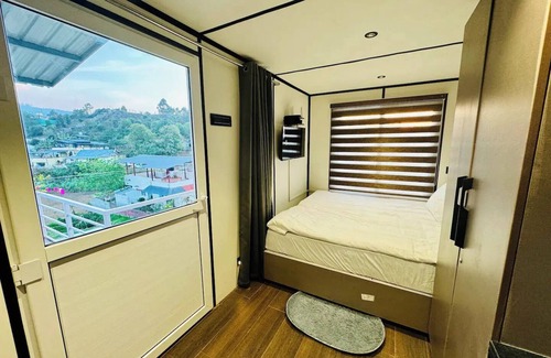 3bhk here means: one 2bhk villa with 2 bedrooms + 2 bathrooms + 1 living room and one container studio with 1 bedroom + 1 bathroom Both the 2BHK villa and the container studio are located within the same complex. A comfortable option for large family and friends.