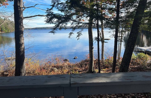 this property boasts stunning views, floating dock and small beach - perfect for swimming, kayaking and loon watching The home sits on frontage of a pristine cove of Toddy Pond - a beautiful, peaceful and natural setting. A firepit, lobster pot, grill, outdoor screenhouse, and free use of kayaks, canoes(complete with paddles and life jackets) provide an ideal setting for relaxation and entertaining.