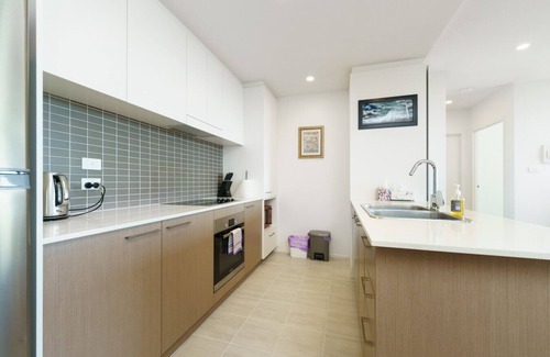 stylish top-floor apartment with a scandinavian touch, offering stunning views of telstra tower and the canberra hills Enjoy a peaceful, light-filled space just a short walk from local shops, cafes, and Woden Westfield. Access to the building’s pool, gym, and more.