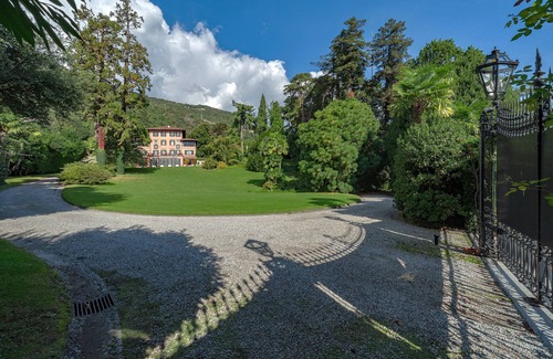outside, the private park (30000 m²) comprises a marvellous green lawn with panoramic views across the lake, heated swimming pool with sun loungers, toys for children, hot shower and dressing room. Tennis court. The grounds support ancient sequoia, cedar, oak, and palm trees. There is an antique cellar with a selection of Italian and international wines. Private mooring available on request.