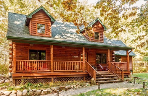 unplug this fall at eagles landing, a 3br cabin on 2 wooded acres near torch lake Just ½ mile from the lake and Dockside, this family-friendly retreat offers a game loft, firepit, and decks.