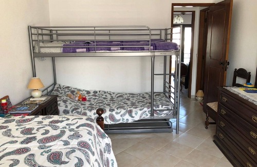 Townhouse with typical architecture of southern Portugal in a small seaside resort with a family atmosphere. You will find all the amenities (bars, restaurants, shops and market ...) The beach is less than 10 minutes' walk away. It is a terraced house composed of three bedrooms, two upstairs, a fully equipped kitchen, a living room, a bathroom (with bath) and a shower room ( with sweet). The bedrooms and the living room are equipped with reversible air conditioners. On the back of the house, the interior courtyard and its barbecue are ideal for dining..