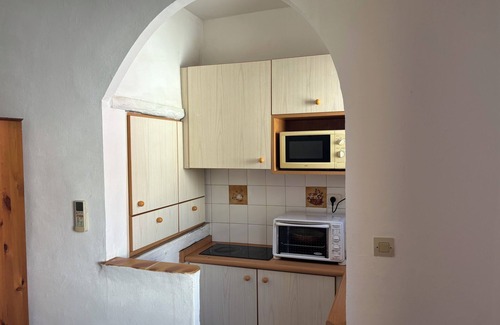 a dining area and air conditioning are featured at this 1-bedroom, 1-bathroom rental Bathroom amenities include a hair dryer and toilet paper. Prepare a home-cooked meal in the kitchenette, complete with an oven, a stovetop, and a refrigerator, as well as a coffee maker, an electric kettle, and a microwave. Other amenities include bed sheets, heating, and a dining table.