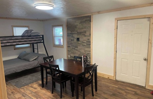 we have a completely remodeled trail house! 3 bedrooms with bunk beds, along with 1 bunk bed out in the shared space, new black stone to cook on, along with new dishwasher and stove You will not have to worry about anything except what trails you will be riding, we are only 2 miles to trail heads, and direct access to outlaw trails across the drive. With 2 full showers there will be no waiting to go out after riding all day..