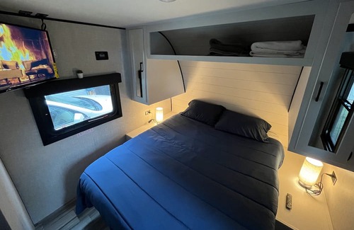 brand new rv located in payson, utah where you will enjoy nature in the city Included in the stay is a picnic area, grill, grassy area, and fire pit to enjoy at night. Screen and projector available upon request for movie night after dark. Perfect for a weekend getaway, staycation, time together with family and loved ones.