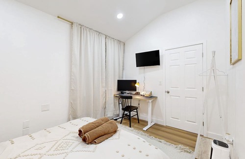 book your stay today and experience the best of southern california living in our newly renovated, one-of-a-kind guest house! please note that if you'd like to access our backyard with a cozy couch area, firepit, and movie projector, as well as our rooftop terrace, you'll need to reserve it at the time of booking