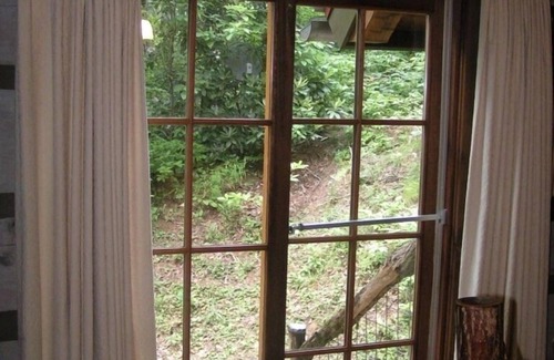 Enjoy a peaceful vacation at our Tree House in the Smoky Mountains. 3-4 bedrooms with 3 & 1/2 baths await you less than 0.3 mile from Main Street in Highlands. Walk to and fish at catch-and-release Harris Lake or simply relax and feed the ducks and geese. A stroll brings you to all of the downtown shops in minutes. The house sleeps 10. The primary bedroom is on the main floor with a king-size bed and en suite bath. The loft has a queen bed in a private bedroom, with its own bathroom. The ground floor has a bedroom with two double beds and a Jack and Jill bath that is shared with an adjoining room that has two twin beds.