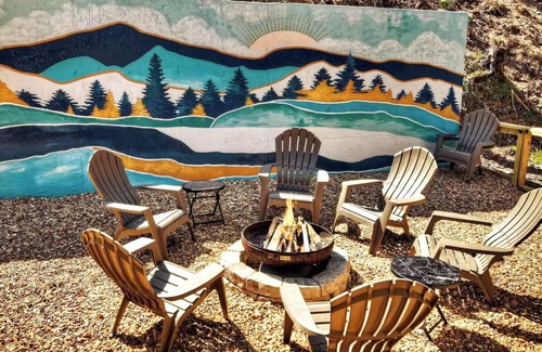 you could also throw some logs on the outdoor fire pit and roast marshmallows or hot dogs be sure to admire the insta-worthy blue ridge mural behind you and the beautiful night sky above you!