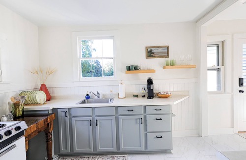 step inside to find original hardwood floors, sunlit historic windows, and plenty of room to relax The Treehouse includes a full kitchen, dining room, living room, laundry room, and Smart TVs in every bedroom and the living room. For a restful night’s sleep, all bedrooms feature blackout shades and curtains.
