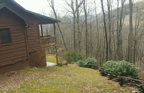Why stay in a busy hotel when you can enjoy peace and privacy in beautiful Maggie Valley? Spend some time relaxing on the back deck and you may start to wonder if you're really in a treehouse. Enjoy peek-a-boo views of the mountains in summer and even more views in the winter. The terraced yard is perfect for picnics or yoga and the small wet weather stream is delightful. There is ample outdoor seating to nap or read a book. Throw some steaks on the gas grill and enjoy dinner outside around the picnic table. The cabin sleeps 4-6 people comfortably . The master bedroom has a comfy queen sized bed and an en-suite bathroom. The second bedroom has twin beds and easy access to the second full bathroom. The sleeper sofa is perfect for lounging and the kitchen has everything you need to cook a delicious meal. Need a little exercise? There are lovely walking trails right outside. The best shopping and dining in Maggie Valley is a 5 minute drive and Waynesville and Lake Junaluska are right around the corner. Cherokee is just 25 minutes away and downtown Asheville is an easy 40 minute drive . The owners live in the area and are always available by phone for questions or dining and activity recommendations. What are you waiting for? Treat yourself to a stay at Treetop and feel all of your stress just melt away..
