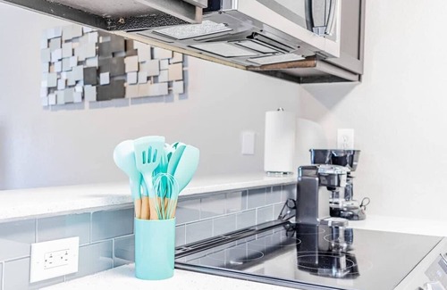 - fully-equipped kitchen with pots & pans, bakeware, dinnerware, silverware, cookware, blender, toaster, and more!