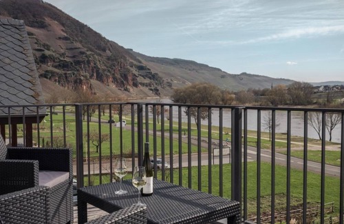 our newly renovated apartment treppchen is a very special oasis for 2 people and offers with its 80sqm but also for 4 people enough space and comfort The newly renovated apartment extends over 2 floors, which are connected by a stylish spiral staircase. On the upper floor you will find the relax room that lives up to its name: a large, illuminated whirlpool with music and views from the picture window, 2 loungers, a TV and a comfortable daybed for 2 persons. Enjoy the weather on the two large, all-day sunny balconies overlooking the vineyards of the unique Moselle Valley and the quaint rooftops of Ürzig. In bad weather, you can enjoy this view from the couch - thanks to the floor-deep window elements.