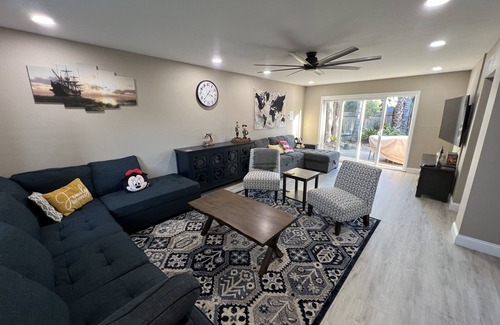 this private tropical oasis is located in the heat of orange county A quick 10-15 mins to Disneyland. Close to the famous Orange Circle popularly known for its restaurants and bars. Our backyard/pool are like no other surrounded by lush palm trees and tropical vegetation throughout. You will feel like you are in Pirates of the Caribbean in Disneyland.