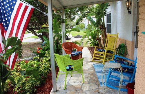 Book Now this Adorable Tropical Cottage Home with lots of space for large families (sleeps 11 comfortably or 12 w/the air bed provided) for a tropical getaway vacation! 4 Bedroom, 2.5 baths over 2,200 sq ft! Great fishing, beaches, shopping, restaurants within walking, biking, or even by boat!! Fully stocked kitchen. Amenities include a gas grill, fishing poles & tackle, 3 bicycles, 2 kayaks, pack n play, outdoor private "Tiki Shower" after a day of fishing and swimming!! Home is fenced for your "Fur Babies"! Covered Gazebo! Outdoor Seating area W/RATTAN SEATING! Contact host for any additional questions!.