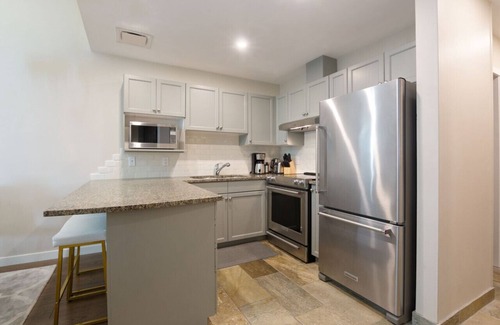 there is ample storage in the entry way and in-suite laundry The kitchen comes stocked with everything you need for cooking including an espresso machine, oils & spices. this condo also has central ac for the warmer summer months!