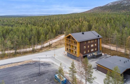 Tunturinlaita D4 is an elegant alpine style apartment in the center of Levi and in the middle of nature. The apartment on the second floor is a great choice for both couples and families. From the balcony of the apartment you can admire the beautiful nature of Lapland, skiers passing by or skiers cooling off on the front slope.
