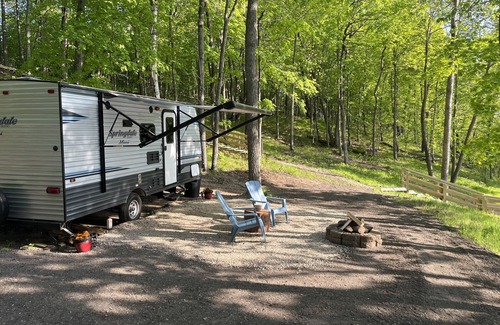 camper sleeps up to 6 people on your own 1 acre wooded lake lot