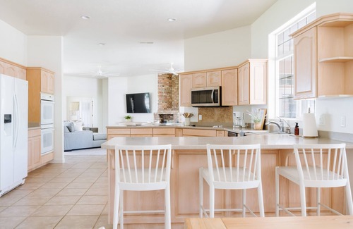 A unique and convenient set up for large groups! "The Gathering Place" and "Zion's View" are two tastefully decorated homes that will sleep a minimum of 34 people combined. The houses are connected by quick walking paths and driveways, and are situated on a several hundred acres ranch. The layout of this property provides an ideal setup for reunions, retreats, sports teams and special celebrations. The ranch is centrally located for Southern Utah's many unique attractions!.