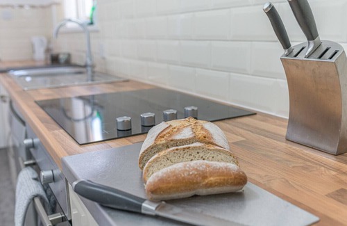 -starter pack of tea, coffee, sugar, oil, salt & pepper, kitchen roll, cling film, tin foil, greaseproof paper, washing up pack, toilet paper and cleaning products provided