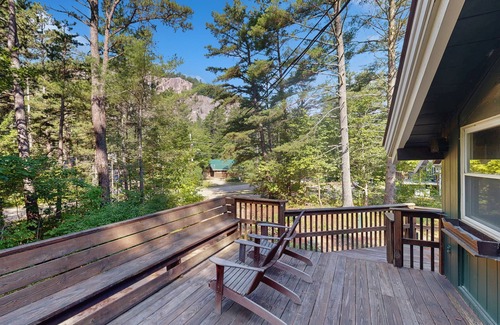 make yourself at home at this inviting mountain retreat that offers nothing but convenience, incredible mountain views, and an unbeatable location near downtown north conway Wake up every single day to memorable mountain views from the deck; you can start your day off the right foot with a steamy cup of coffee on the deck. The upper level of this cozy retreat offers a convenient open living/kitchen/dining area. Let your guests relax and watch some morning TV while you surprise them with savory scrambled eggs or a traditional PB&J sandwich prepared in the fully-equipped kitchen. If you visit during the chilly winter months, the gas stove will keep you all nice and warm no matter how long you're staying. Also, you can find an on-site washer/dryer that will be just ideal for your getaway, especially for long stays. You won't have to worry about going downtown to find a laundromat or packing heavy.