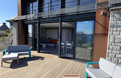 WELCOME TO TY ANA GWEN - FAMILY HOUSE IN TRÉBEURDENDive into the bright and welcoming world of Ty Ana Gwen, a charming house nestled between two of Trébeurden's most beautiful beaches: Pors Mabo and Tresmeur. Perfect for families or groups of friends, this spacious house combines modern comfort, a friendly atmosphere, and a magnificent sea view.AN IDEAL LOCATION BETWEEN BEACHES, PORT AND COASTAL TRAILSLocated in a quiet residential neighborhood, Ty Ana Gwen offers you a privileged setting for your vacation on the Pink Granite Coast.Within a 10-minute walk, access the Tresmeur beach, its sailing school, and its restaurants.The Pors Mabo beach, more wild, is also very close, ideal for nature and tranquility lovers.The port of Trébeurden awaits you to stroll, enjoy seafood, or board a boat to Milliau Island.Immediate departure for coastal trails on foot, between coves and breathtaking panoramas.TY ANA GWEN HOUSE OFFERS:A bright house of 120 m², perfectly equipped to accommodate up to 10 people:- room 1: sofa bed and private shower (on ground floor)- room 2: a double bed with sea view (floor 1)- room 3: a double bed with sea view (floor 1)- room 4: a double bed with sea view (floor 1)- room 5: one double bed, 2 single beds (bunk beds) and shower (garden level)- a bathroom on the garden level, a bathroom on the ground floor, and a bathroom on the first floor.- A large, warm living area with a fireplace, dining space, and living room.- Modern American kitchen, fully equipped (induction hobs, oven, microwave, dishwasher, bean coffee maker, kettle, etc.).COMFORT AND EQUIPMENT- internet- TV in the living room- Washer and dryer- Iron, drying rack, baby equipment on request, hair dryer, barbecue- Electric heating- Private parking on the property- baby footIN IMMEDIATE PROXIMITY- Sailing school 800 m away (catamaran, windsurfing, kayak)- GR34 hiking trails, starting 300 m away- Shops in the town center and Intermarché within 2 km- Saint-Sansom Golf Course 10 minutes away- Perros-Guirec, Ploumanac'h, 7 Islands Reserve accessible in 15 minutesPRACTICAL INFORMATION- Capacity: 10 people maximum- Bed linen and towels included- Non-smoking house- Pets not allowed (small dogs upon prior request)BOOK YOUR STAY AT TY ANA GWENTreat yourself to a Breton getaway between sea and nature, in a house designed for shared moments, family laughter, aperitifs on the terrace, and sunsets by the sea.We look forward to welcoming you to Ty Ana Gwen, for a warm and unforgettable stay in Trébeurden..