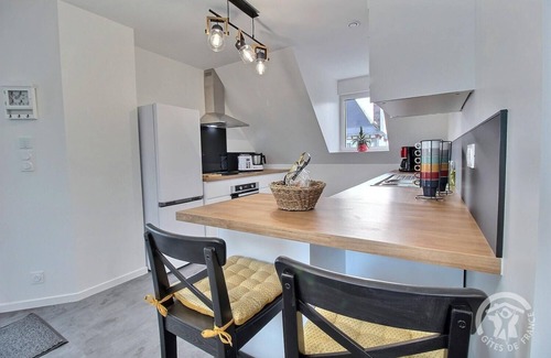 Your vacation rental is located on the first floor. It comprises, on the same level: a kitchen open to the living room (air conditioning), two bedrooms (one queen-size bed, two single beds that can be combined to form a king-size bed), a bathroom with shower, and a toilet. - Outside: A 40 m² private garden. A private terrace with no overlooking view of the guests. One private parking space on the property. The house includes the owners' second home (on the ground floor) and this gîte (upstairs): each has its own independent entrance and private garden. This accommodation is reserved for leisure guests. Come and discover this charming apartment, just renovated, located on the Côte de Goëlo, ideally located for a seaside holiday. You will reach the Petit Havre beach 2.6 km away from where you can hike on the GR 34. Very pretty panoramas in perspective. Nearby, visit Binic (4.5 km), a very lively and popular resort for its marina, its quays lined with restaurants, its seawater swimming pool. Continue towards St Quay Portrieux (11 km), another beautiful seaside resort with its fishing and marinas, its casino. Plérin with its large Rosaires beach (8 km) and Saint Brieuc with its half-timbered houses, its Légué port (10 km) will also be stopovers not to be missed. A little further, head towards Paimpol, the City of the Icelanders (38 km). And if during your stay, a getaway to an island tempts you, then go to Arcouest (44 km), heading towards the jewel of the department: Brehat! 100 m from the center of Pordic and all its shops..