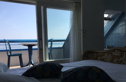 * recent wing: a room with balcony sea view, a bathroom, a toilet