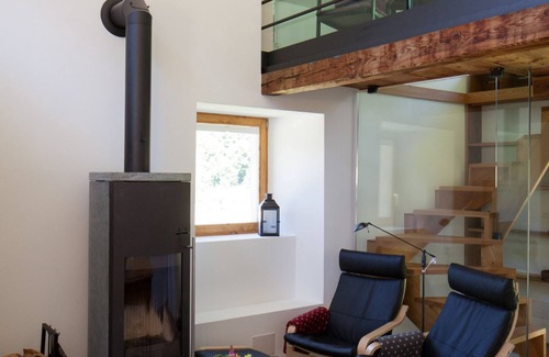 tasteful, modern-rustic furnished living spaces Ground floor: separate entrance in bedroom with bunk bed and divan, suitable as sofa bed for 1 person. Bathroom with shower/toilet. Staircase in the upper floor. 1st floor: entrance into living room with dining table and 2 armchairs, swedish stove, sat-tv, wireless internet and open kitchen with modern cooking combination with e-ceramic stove, dishwasher, exit to garden seat. Staircase in the upper floor which is open to the living room. 2nd floor: open gallery with double bed for 2 persons. Ground floor with wooden ceilings and sight beams. Upper floors with sloping ceilings. Maximum occupancy is 4 persons. (NL-00003445).