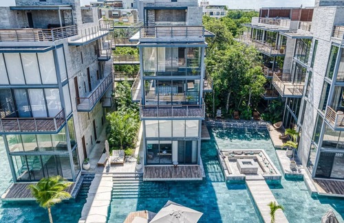 710 sqft / 66m2 double-height lateral loft located on 1st and 2nd floor: this very luxurious and exclusive swim up property is located close to the beach and tulum center, sun loungers area, and 24/7 security