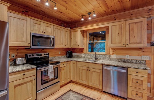 amenities: uncle john's cabin is the perfect place for kids to have fun and for adults to relax The kitchen is fully equipped with everything you need to prepare and enjoy family meals. Kids can enjoy the bottom level of the house, which includes a Smart TV for streaming, as well as Spectrum cable channels! This area also has a pool table, a ping-pong table, air hockey, an indoor basketball hoop, a dart board, a card table with board games for all ages, and a full bathroom.