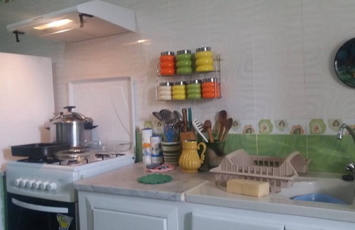 une grande cuisine bien aérée, lumière naturelle, très bien équipée Une salle de bain aménagée. Une toilette séparée.