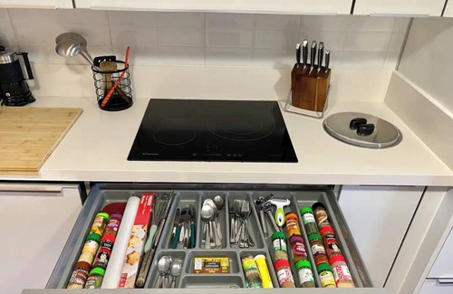 air conditioning and a desk are featured at this 3-bedroom, 25-bathroom rental. Bathroom amenities include a hair dryer, towels, and toilet paper. The kitchen is equipped with an oven, a refrigerator, and a dishwasher, as well as a coffee maker, a microwave, and cookware. And because there's access to laundry facilities, you can go a bit lighter on your packing.