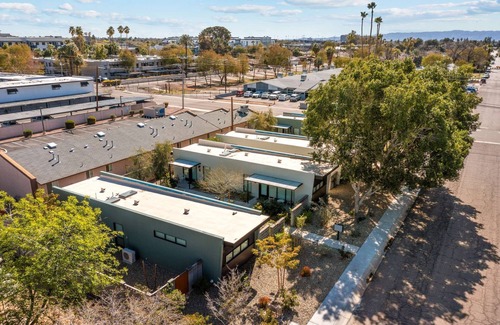 inspired by the quirk of a midcentury 1950s trailer park and the charm of a cottage courtyard community Our private, light and bright designs are fully equipped with all the essentials to make your stay feel like a second home. Mature shade trees and lush desert landscaping surround two shared courtyards with barbecues, fire pits, and patio furniture so residents can enjoy the enviable Arizona indoor/outdoor lifestyle..
