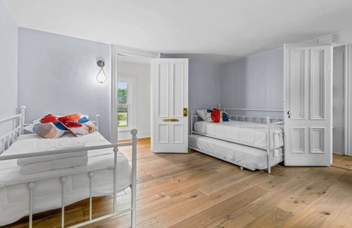 the second story at strawberry castle, where the original character of the home is lovingly preserved, boasts three interconnected bedrooms and three bathrooms, along with a charming play area for the little ones Each bedroom is a haven of comfort, adorned with tasteful décor and cozy furnishings, promising restful nights and sweet dreams. The bathrooms, meticulously designed, offer a touch of luxury with a blend of modern fixtures and timeless charm. Meanwhile, the small play area provides a space for the children to let their imagination soar, ensuring that every family member finds joy within the enchanting walls of Strawberry Castle.