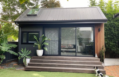 Welcome to our bespoke and charming backyard studio nestled adjacent to a lush park with majestic fig trees and vibrant birdlife.