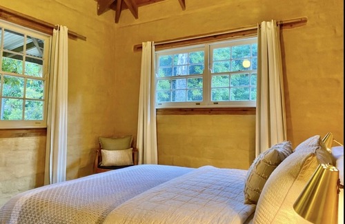 the cottage is utterly private and serene, placed back from the road and other homes, bounded by bush or gardens on all sides