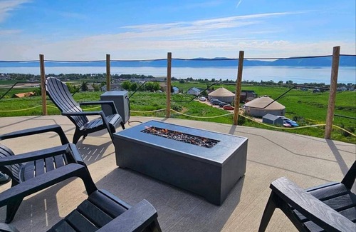 Oso Blu's Rendezvous Luxury Yurt is unlike any place you have stayed with spectacular panoramic views of the iconic blue water of Bear Lake. These custom yurts are the largest yurts made in North America at 40 feet in diameter and twenty feet high, space is abundant. The yurts include fully equipped kitchens, laundry, two private toilets, a large walk in shower, two separate bed rooms, a children's play loft/extra sleeping area, opening/closing windows, and an entertainment center for family movies. Enjoy sitting by the fire during cold nights while you watch the stars from the dome sky light above. Oso Blu is the most unique and enjoyable family experience in Bear Lake.