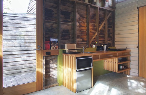 Relax & unwind in our Suite Shed; in an old orchard garden, this traditional Tasmanian shed has been converted into a warm, self-contained guest suite with wheelchair accessible bathroom & kitchenette.