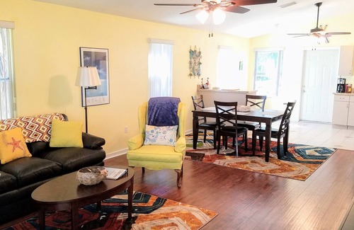 this "hammock" home is open, light and airy ~ a perfect place to enjoy a day on the front porch, or a backyard hammock A place to relax, renew, reconnect with nature and yourself. This is a place to enjoy the quiet pace of old Florida. A single and tandem kayak are included.