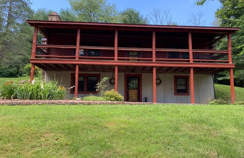 Unto the Hills offers seclusion and quiet, except for the sounds of nature in a beautiful cabin. 2 bedroom, 2 full baths, queen sleeper sofa in lower-level great room, fully furnished kitchen, three covered porches/2 levels in front of cabin, external security cameras covering entry doors and hot tub, back covered porch with hot tub, propane grill, fire pit, fishing pond with dock, stream, wood burning stove. 2 miles from Boch Hollow State Nature Preserve, 19.7 miles to Old Man's Cave, 11.2 miles to Valley Zipline Tours, 10.5 miles to Lake Logan..