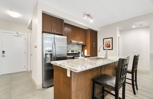 indulge in culinary delights in the sleek, fully-equipped kitchen with top-of-the-line appliances Whether you're mingling at the breakfast bar or soaking up the sun on your private patio or rooftop deck, each moment promises blissful relaxation or thrilling excitement.