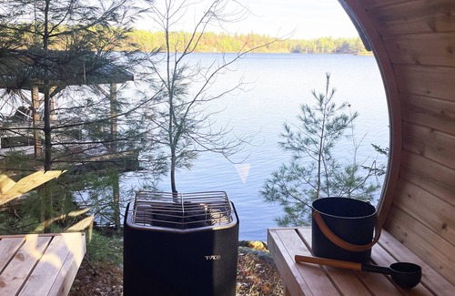 Upscale, unique, clean, spectacular lakefront cottage with SAUNA! is located in Central Frontenac. Upscale, unique, clean, spectacular lakefront cottage with SAUNA! provides accommodation, featuring Fireplace/Heating, Barbecue/Outdoor Cooking, Child Friendly, among other amenities. This Cottage features Fireplace/Heating, Barbecue/Outdoor Cooking, Child Friendly, to make your stay a comfortable one.