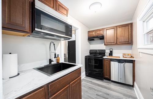 Enjoy a newly remodeled 1 bedroom 1 bath apartment in central Columbus! Your stay is conveniently located within a few minutes drive from Historic Crew Stadium, Ohio State University, Old North Columbus, Short North Arts District, Fairgrounds, and the Convention Center. The space features a stocked kitchen, FREE easy access street parking, and is pet friendly! This space is one of 4 units in the building and features updates like new drywall, sinks, microwave, and shower!.
