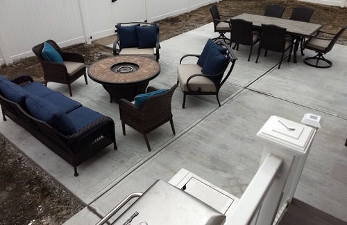 brand new kitchen with quartz countertops equipped with all of the amenities you and your group may need Comfy beds with upgraded linens. Huge outdoor patio with a large gas fire pit, stainless grill and new outdoor furniture.