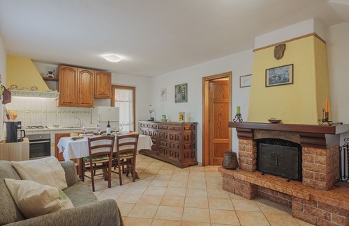 3-room house 80 m2 on 2 levels Rustic and cosy furnishings: living/dining room with open-hearth fireplace, dining table and satellite TV. Exit to the terrace. Kitchenette (oven, dishwasher, 4 gas rings, toaster, freezer, electric coffee machine). Shower/bidet/WC. Gas heating (extra). Upper floor: 1 room with 1 french bed (180 cm). Exit to the balcony. 1 room with 2 beds. Exit to the balcony. Balcony, terrace roofed. Terrace furniture, barbecue, deck chairs (4), box-room. Beautiful view of the mountains and the forest. Facilities: washing machine, iron, children's high chair, baby cot for up to 2 year olds, hair dryer. Internet (WiFi, free). Parking (fenced 2 cars) at the house. Maximum 1 pet/ dog allowed. it046005c2qy036nn7